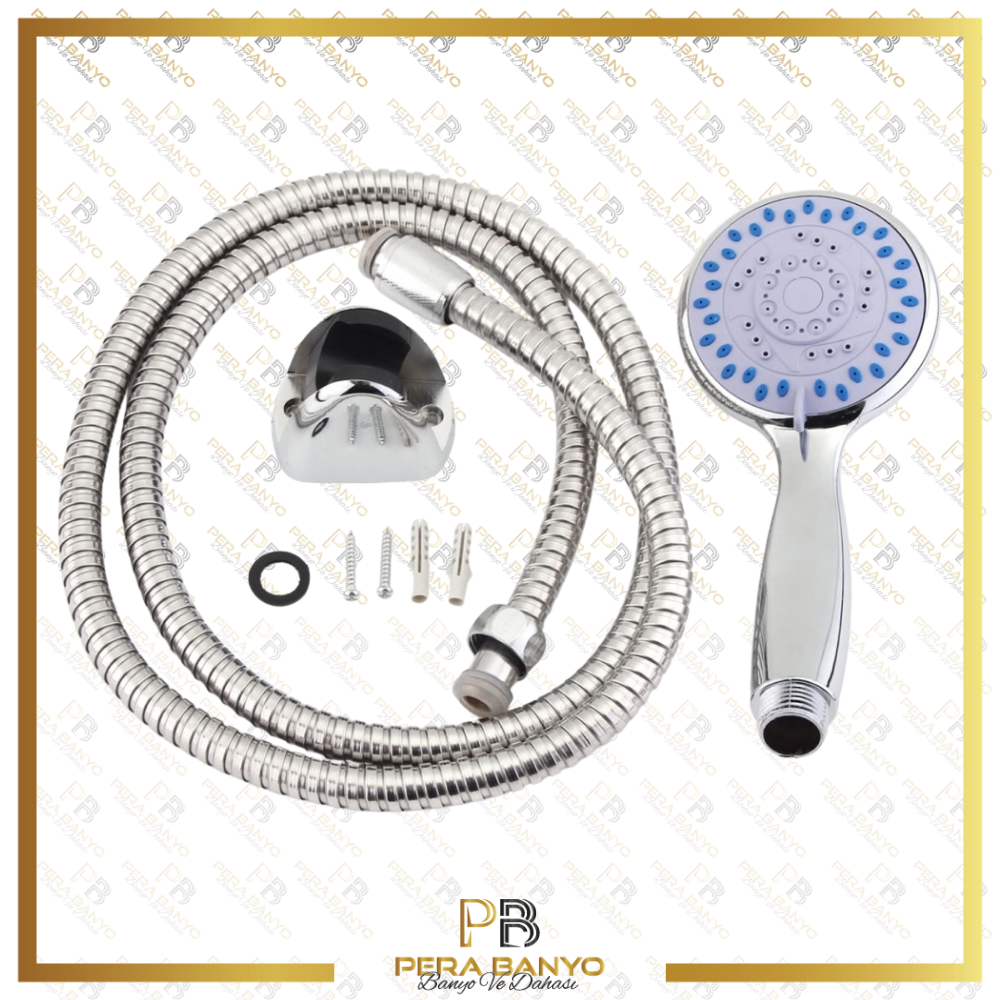 Orijinal ABS Hammaddeden Üretilmiş Kromlu ve Kireç Kırıcılı, Fonksiyonlu Tasarruflu El Duşu 150 cm'den 170 cm'e Esneyebilen Çift Kenetli, Son Derece Dayanıklı EPDM İç Hortumlu, Paslanmaz Duş Spirali