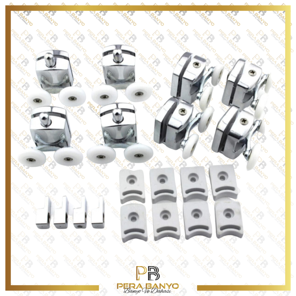 Seta kırılmaz duşakabin tekeri krom çift teker duşakabin rulmanı eksiksiz tam set. ; Eksiksiz tam set ! Çift teker duşakabin rulman seti Kesinlikle kırılma yapmaz ! Seta duşakabin teker seti krom 1.Sınıf malzeme kullanılmıştır. ; Plastik parçaları özel karışımlarla güçlendirilmiş, kırılma yapması engellenmiştir. ; Piyasadaki uyduruk , kalitesiz ürünlerle kesinlikle karıştırmayınız. ; Ürün kendi kutusunda gönderilmektedir. ; Montajı oldukça kolay ve pratiktir. ; Paket içeriği : 4 adet üst teker 4 adet alt teker 8 adet fren plastiği 4 adet cam tutucu.;
