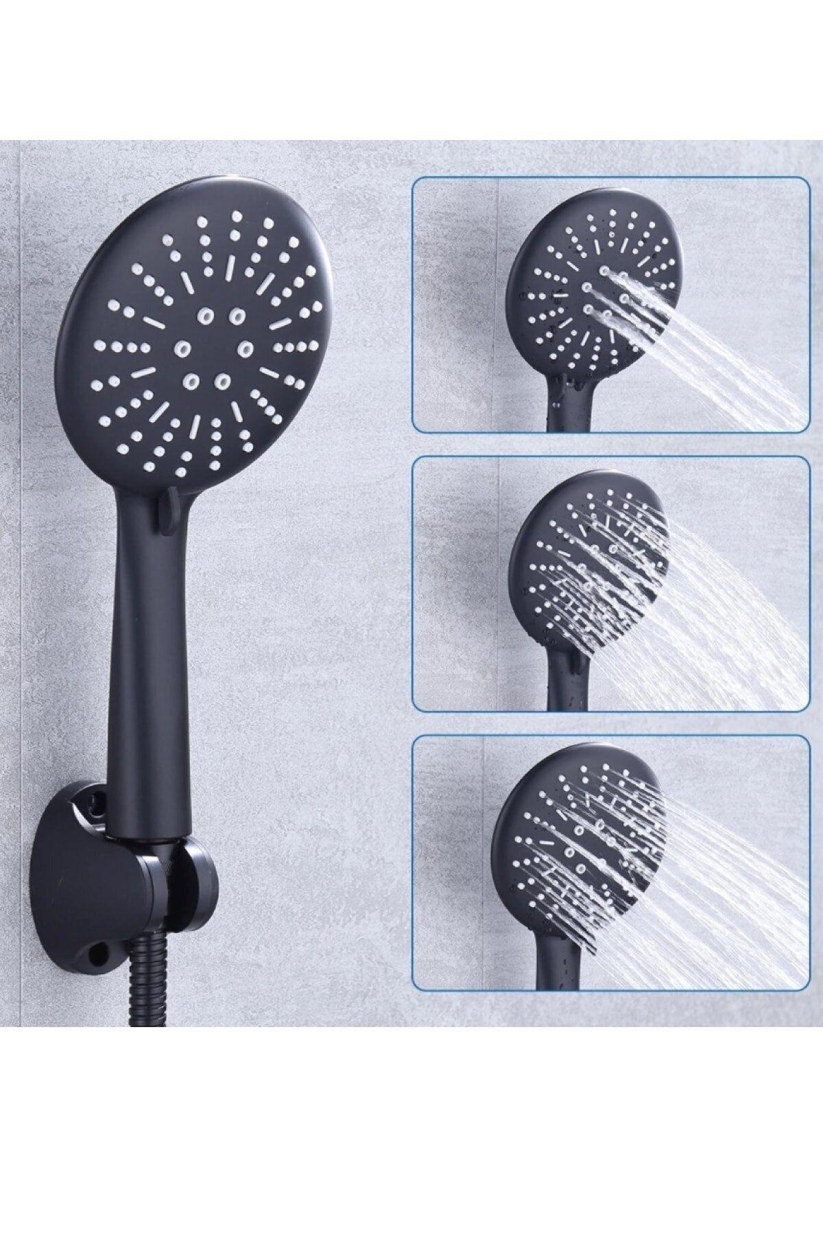 Panter 5 Fonksiyonlu Siyah Duş Başlığı + Pvc Duş Hortumu + Vakumlu Mafsal Duş Takımı